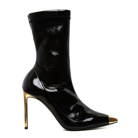 The Punk version of your regular short elastic organic patent leather booties , gold plated...