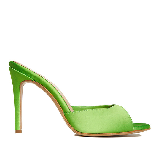 Vicky Green Grass Satin Mules