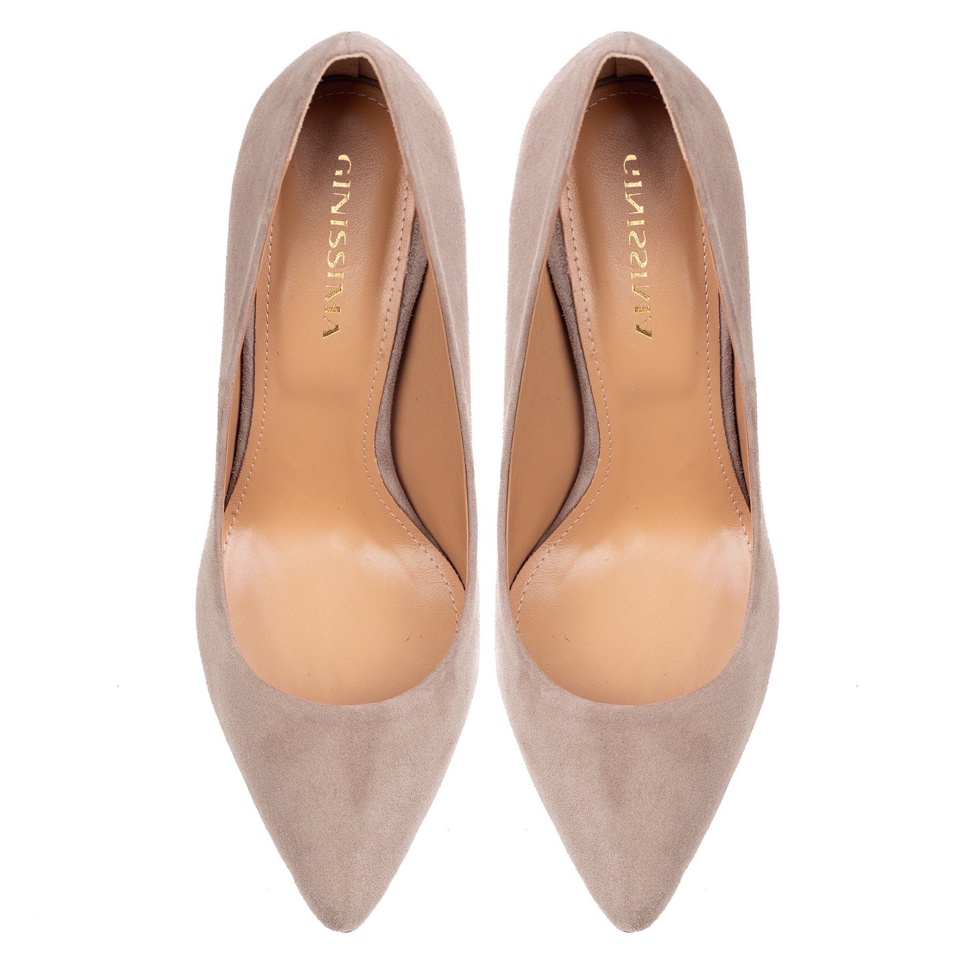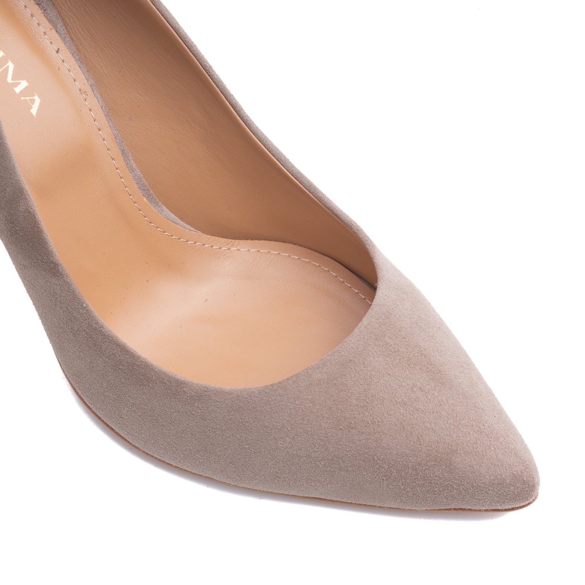The Alice stiletto pumps in the finest Italian nude suede featuring a classic pointed toe, a branded insole, a slip-on style and a high stiletto heel.