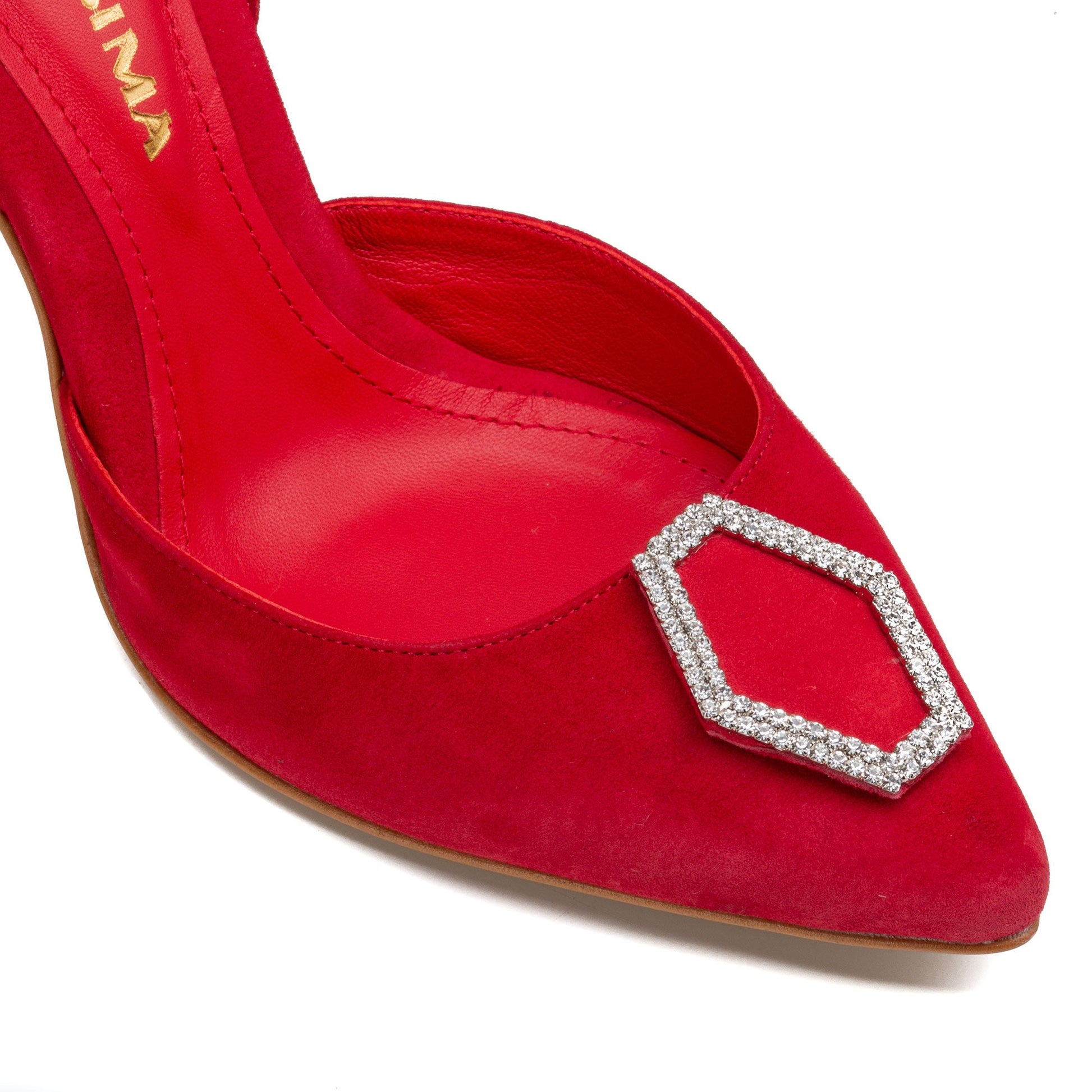 Alice Red Suede and Crystal Buckle Slingback Pumps