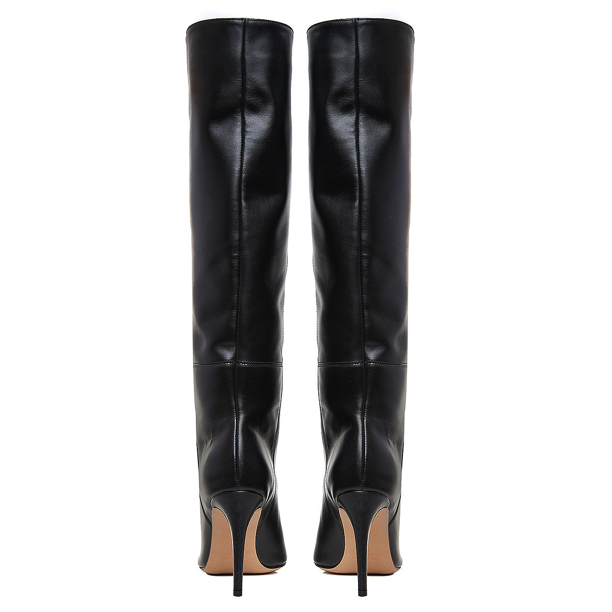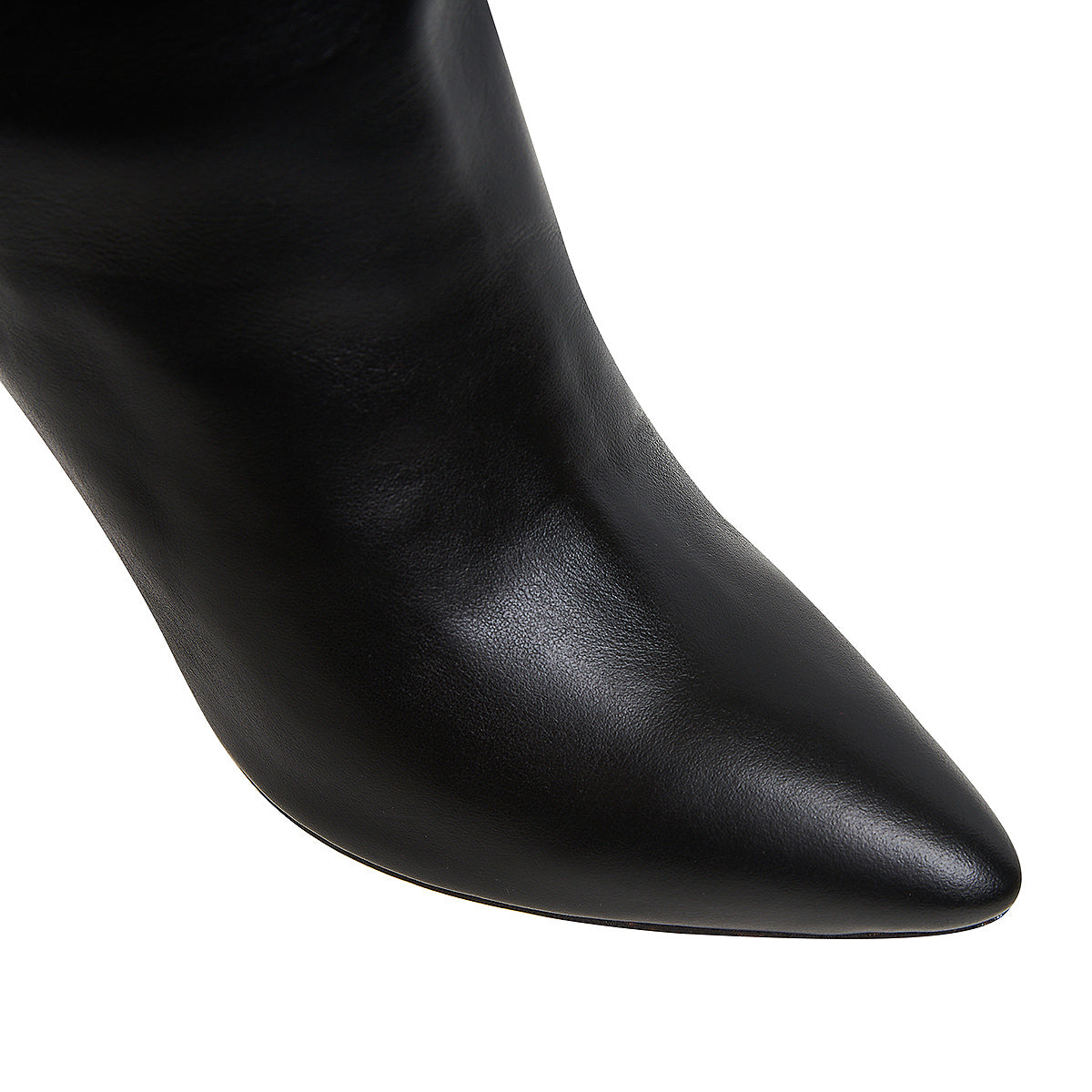 These classic boots, wide on the leg, without a zipper, flatter almost any type of figure. With a pointed tip and a comfortable fit, this model was designed to be easily worn with both day and evening outfits, being suitable both over trousers and over stockings.