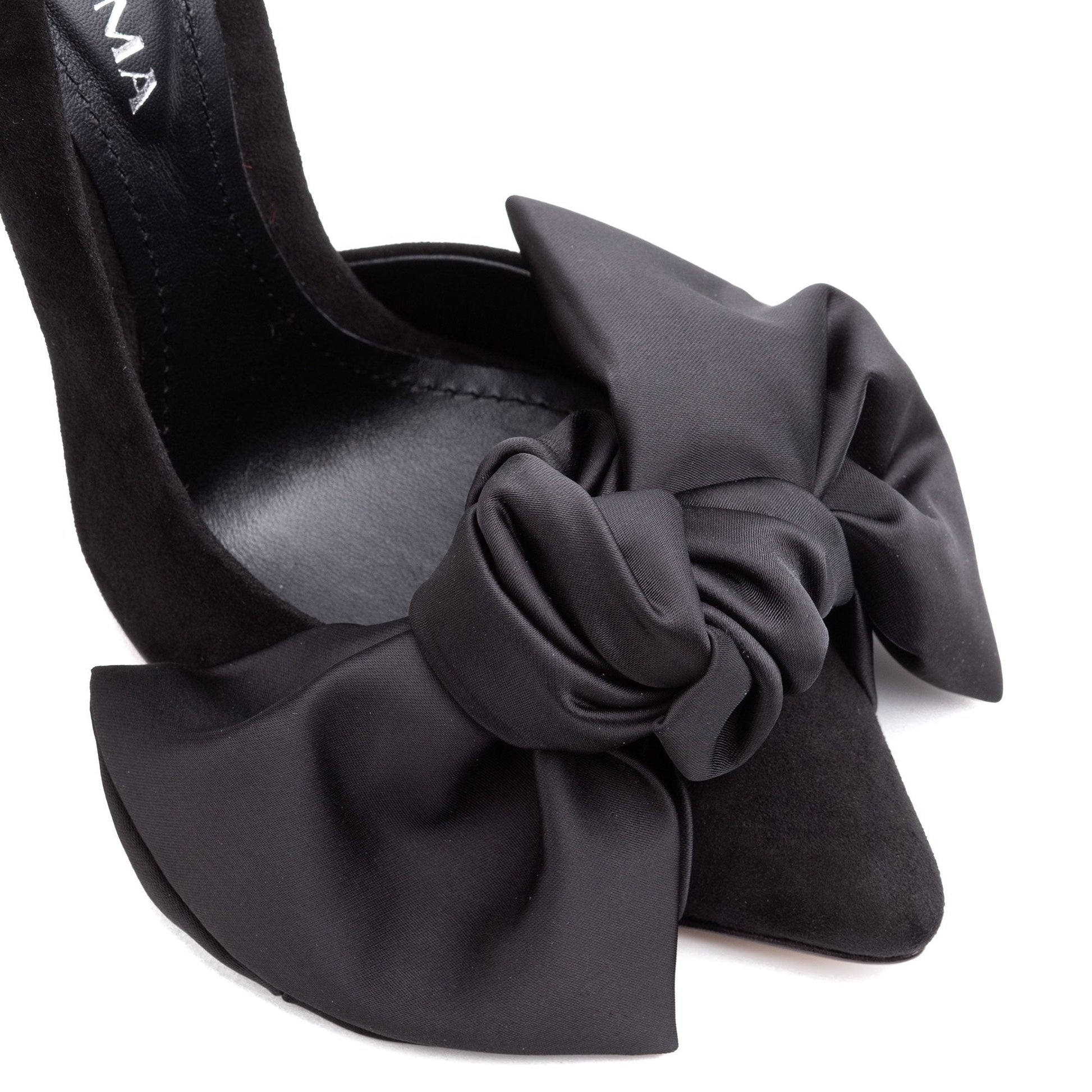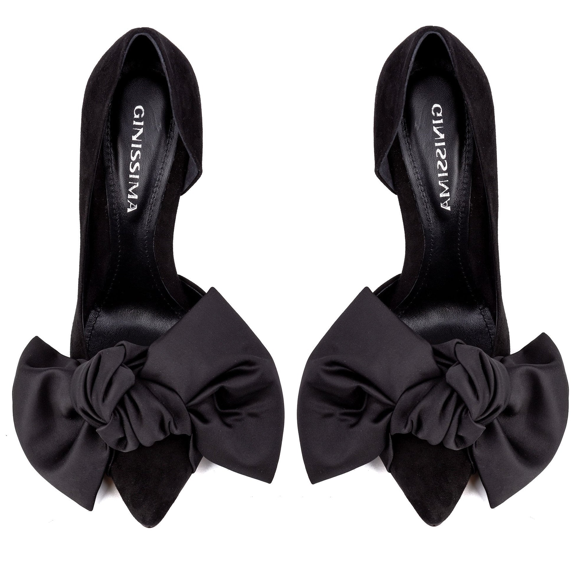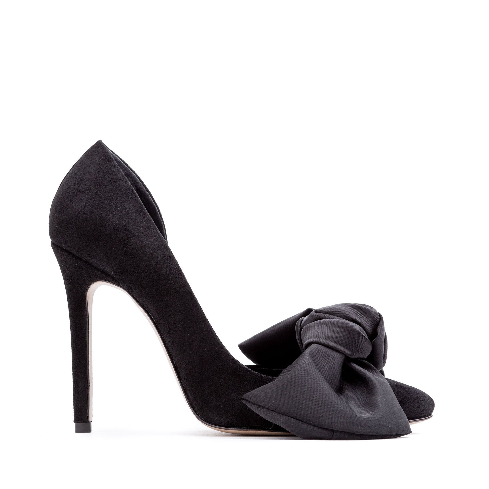 These open sided simple but beautiful stilettos adorned by an oversized satin bow will steal the show.