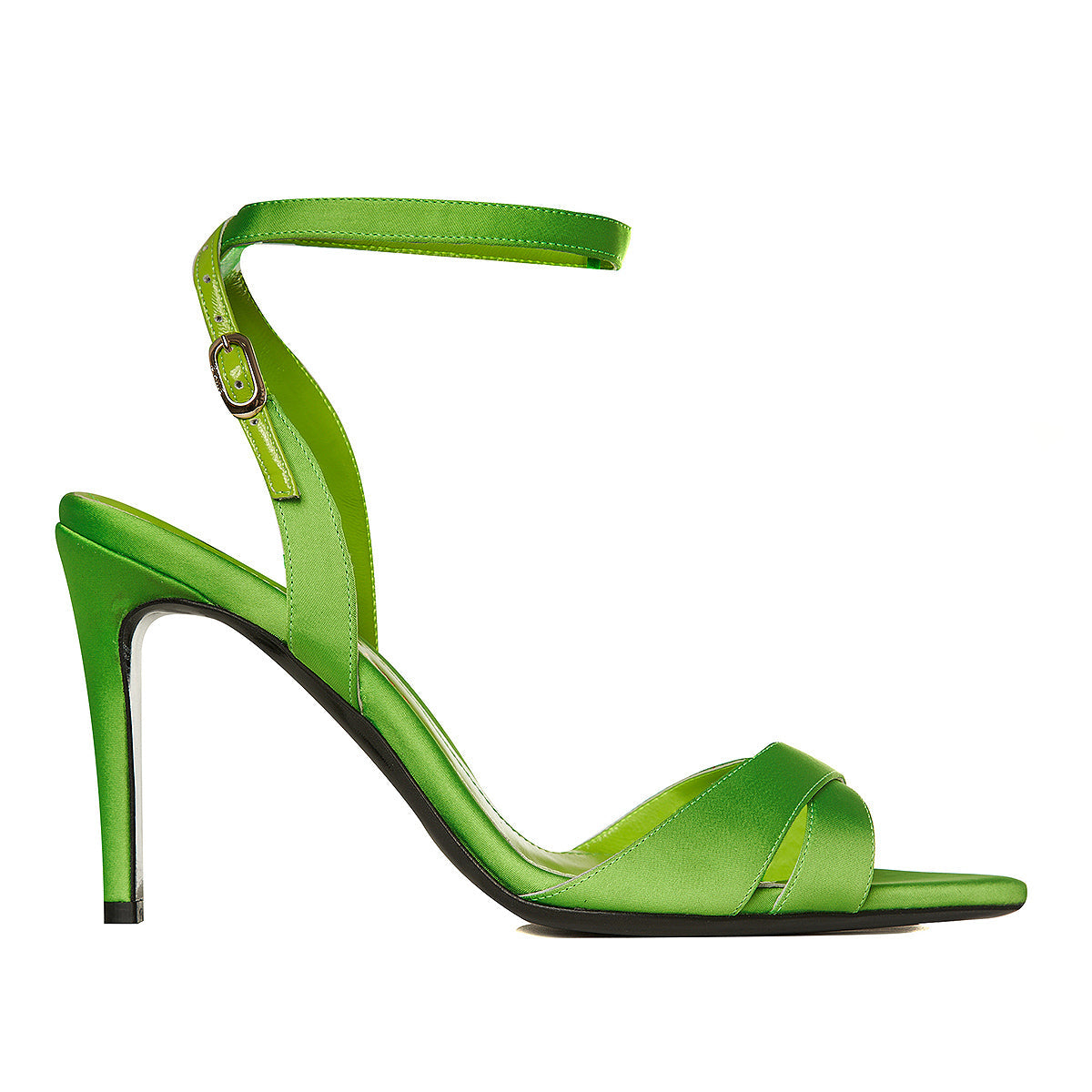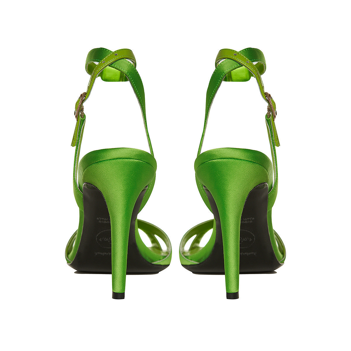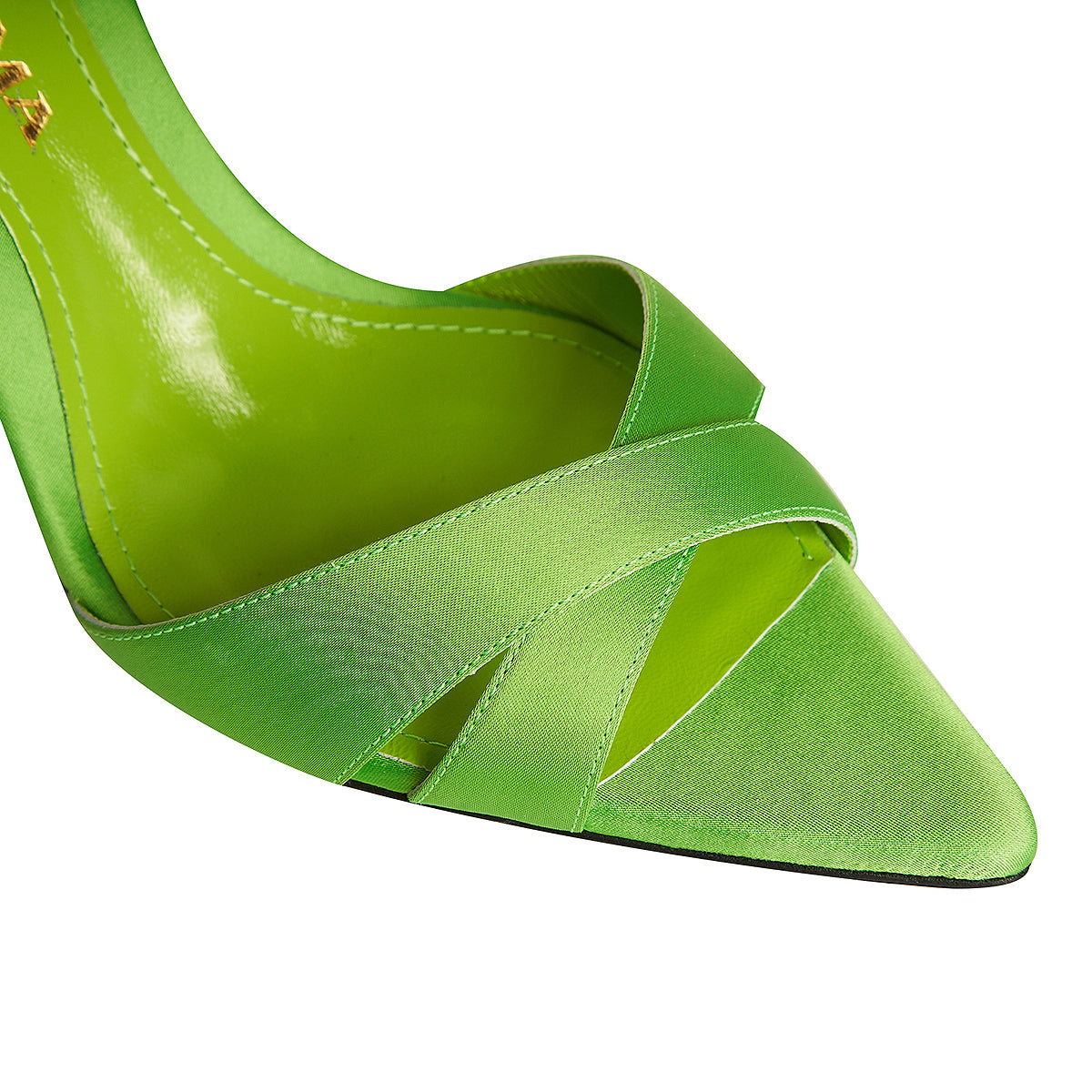 Thea, our take on the Party-Girl look, on a 9.5 cm stiletto heel, all made from luxurious satin doubled by the softest Italian leather.